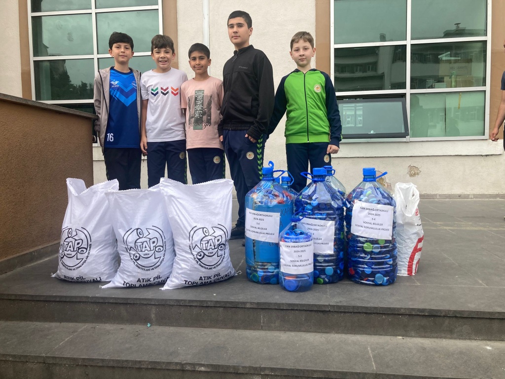 DOĞAYI KORUMAK ÇEVREMİZİ TEMİZ TUTMA BİLİNCİ OLUSTURMAK ADINA 5-E SINIFIOLARAK TOPLADIĞIMİZ ATIK PİLLERİ VE PLASTİK KAPAKLARI KEÇİÖREN BELEDİYESİNE TESLİM ETTİK.
